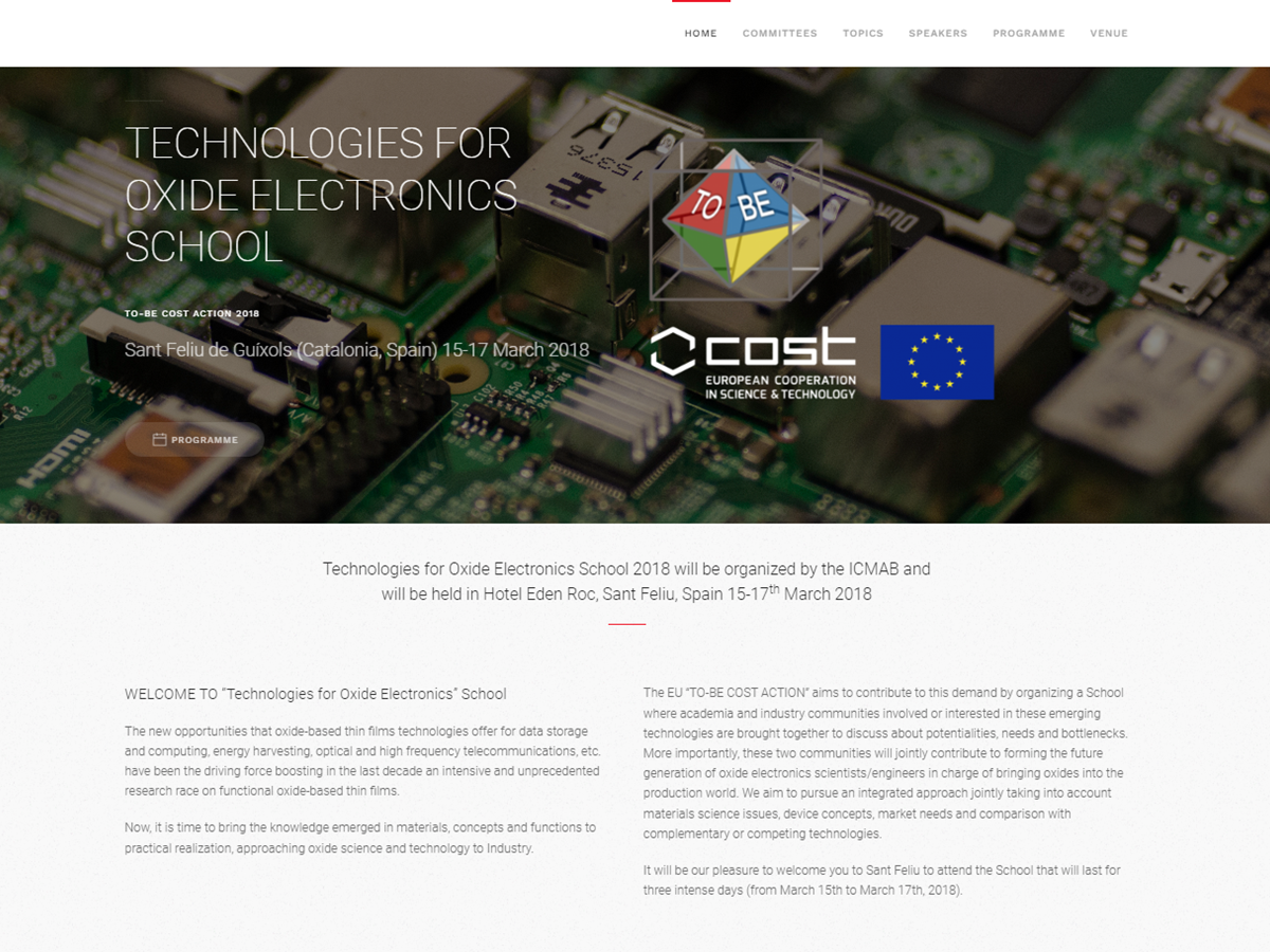 TECHNOLOGIES FOR OXIDE ELECTRONICS SCHOOL 2018